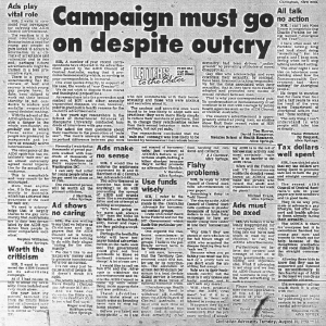 - not for the local newspaper. "We have funded very frank ads