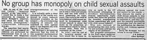 It serves to sabotage the facts of child sexual abuse and perpetuates mythologies which allow the community to avoid the real issues regarding child sexual abuse.