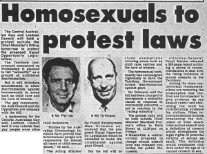 In the end the CLP government, with the support of opposition members like Neil Bell, was successful in implementing their inequal legislation. Although the circumstances allowing discrimination on the basis of sexuality in relation to the care of minors were ultimately quite restricted, it still felt like a major loss to us at the time. But, nothing is forever, and a decade later in 2003 the Labor Attorney General, Dr Peter Toyne, introduced reform legislation to ensure equality for gay and lesbian territorians in a broad range of areas, including removing the discriminatory exemptions from the NT Anti-Discrimination Act.