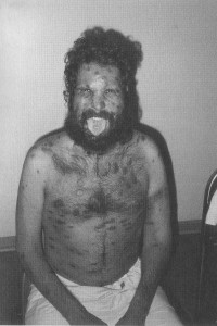 The last image of Eric shows the ravages of Kaposi's Sarcoma; a rare form of skin cancer prevalent in the early years of the epidemic. It is almost unheard of these days thanks to advances in treatments. It is definitely a shocking image, but one that Eric chose to be published as his final one. As well as a clinical photo to evidence his ultimate reality, it was also clearly one last opportunity for him to poke his tongue out at the world.