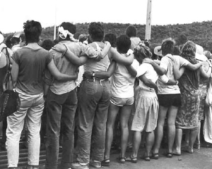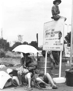 Desperation was a dull ache in our coupled consciousness until someone in Brisbane gave us the name of a sister living up north, the only dyke in a 1,000 square kilometres, or so it seemed. By the time we got to Cairns, we were also desperate for green weed but unfortunately our new friend was a drug-free vegetarian. She did, however, tell us about a women-only protest about to take place at the gates of an American military base near Alice Springs. A thousand women were expected and that must mean more of the sisterhood than usual. Peace, the purpose of the protest, was, I confess, an afterthought.